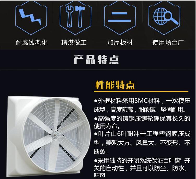 排风机南通_工业排风扇常州_换气扇_上海工业风机百叶窗可以自动起闭从而达到防尘、防水效果,外型美观大方,是现代化厂房降温通风的佳选择。具有环保、节能特点的排气扇将成通风降温设备市场主流。